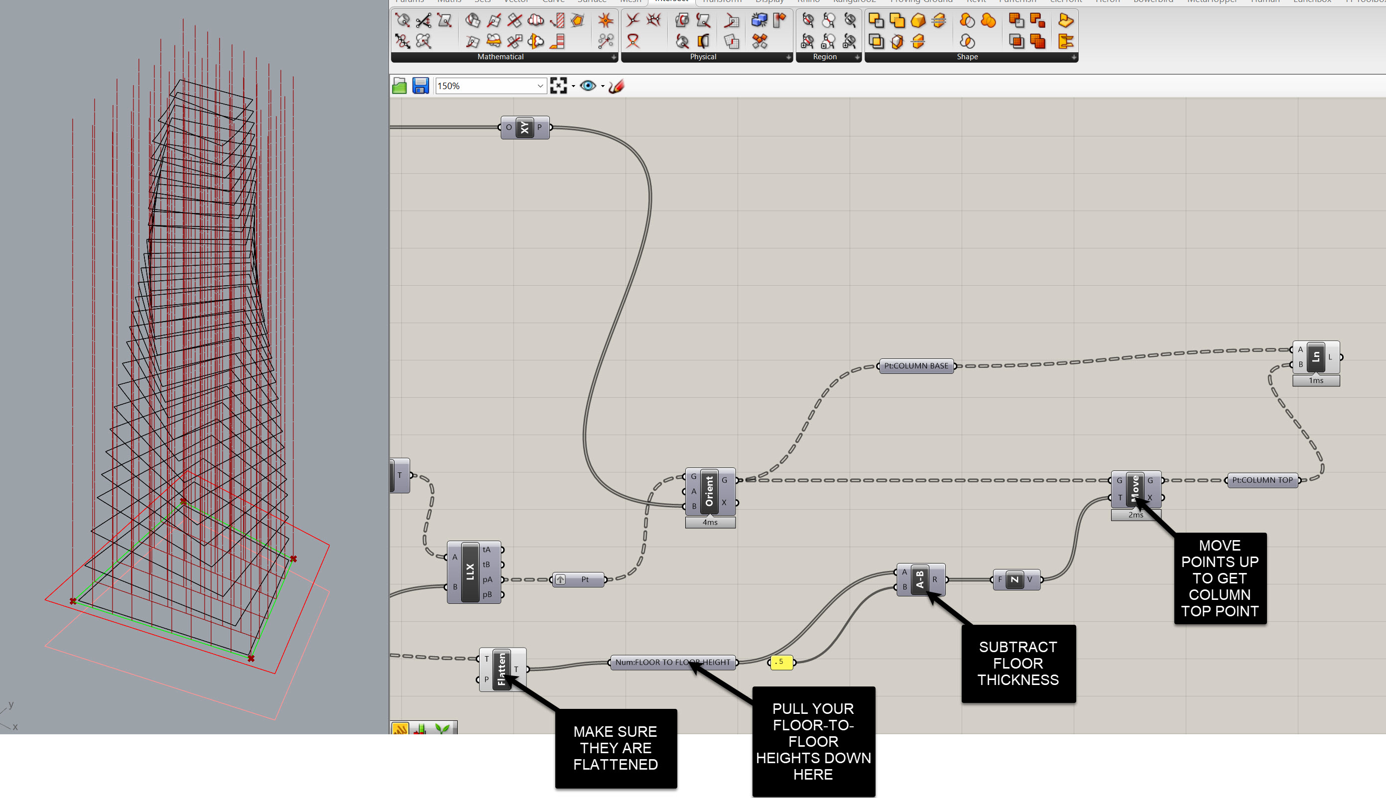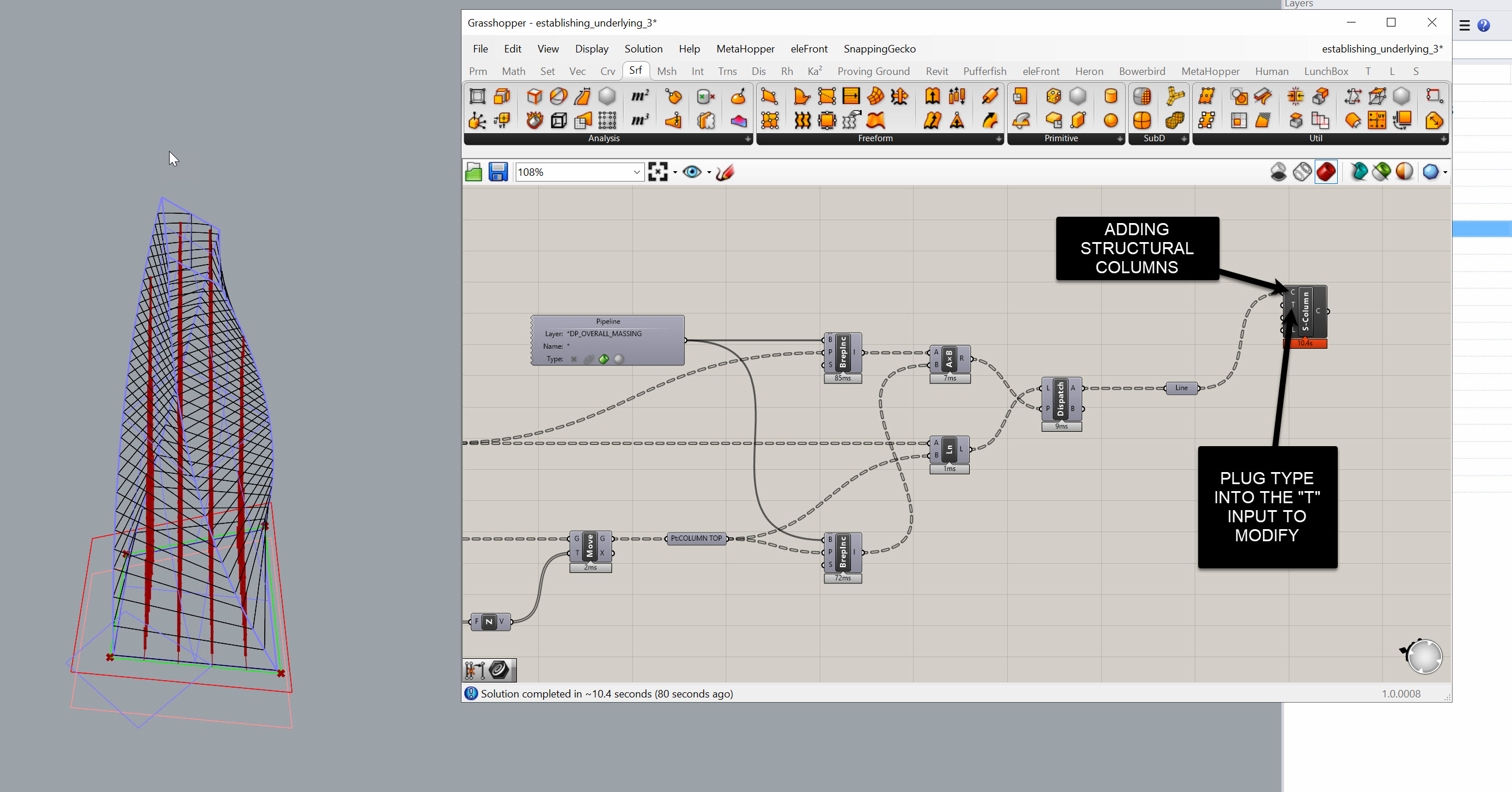 This workflow establishes the foundation for a fully parametric structural system that automatically adapts to your geometry and massing logic.