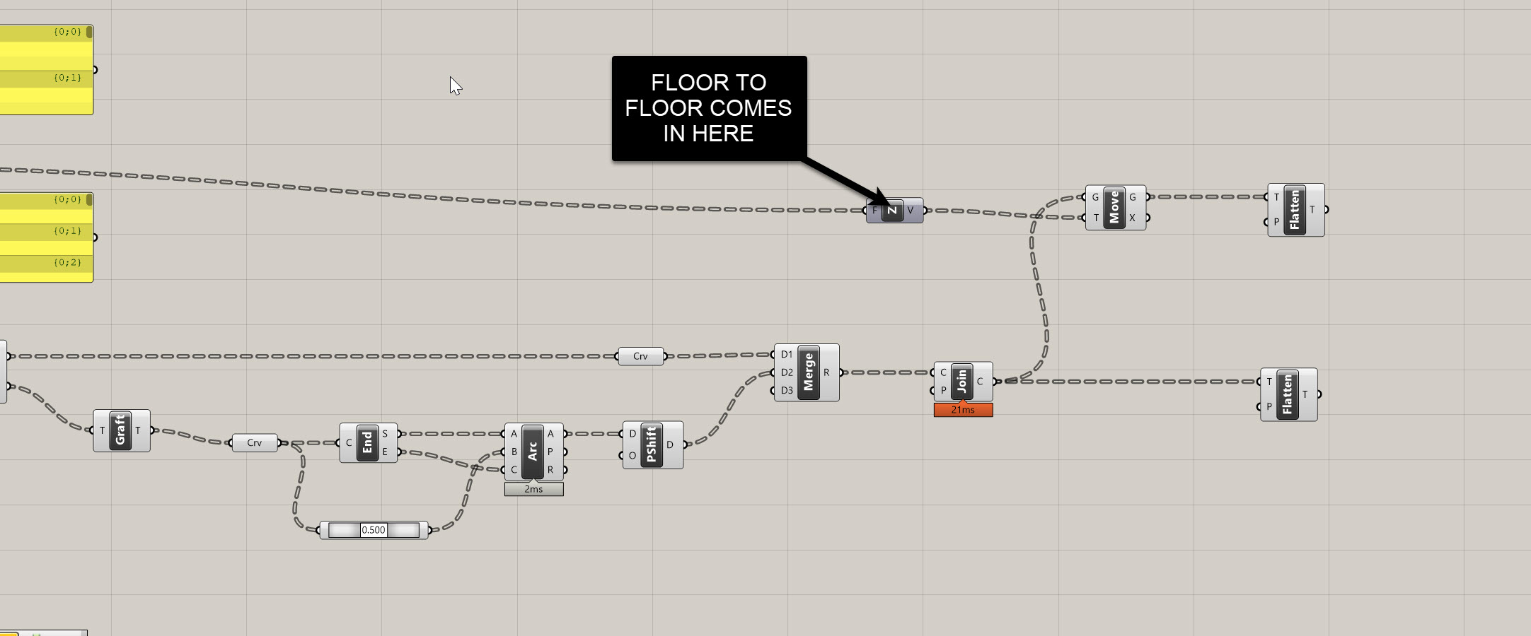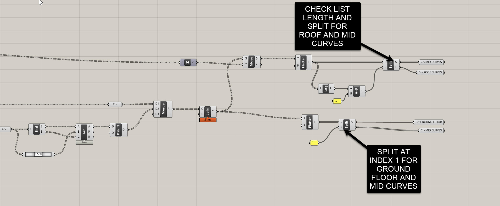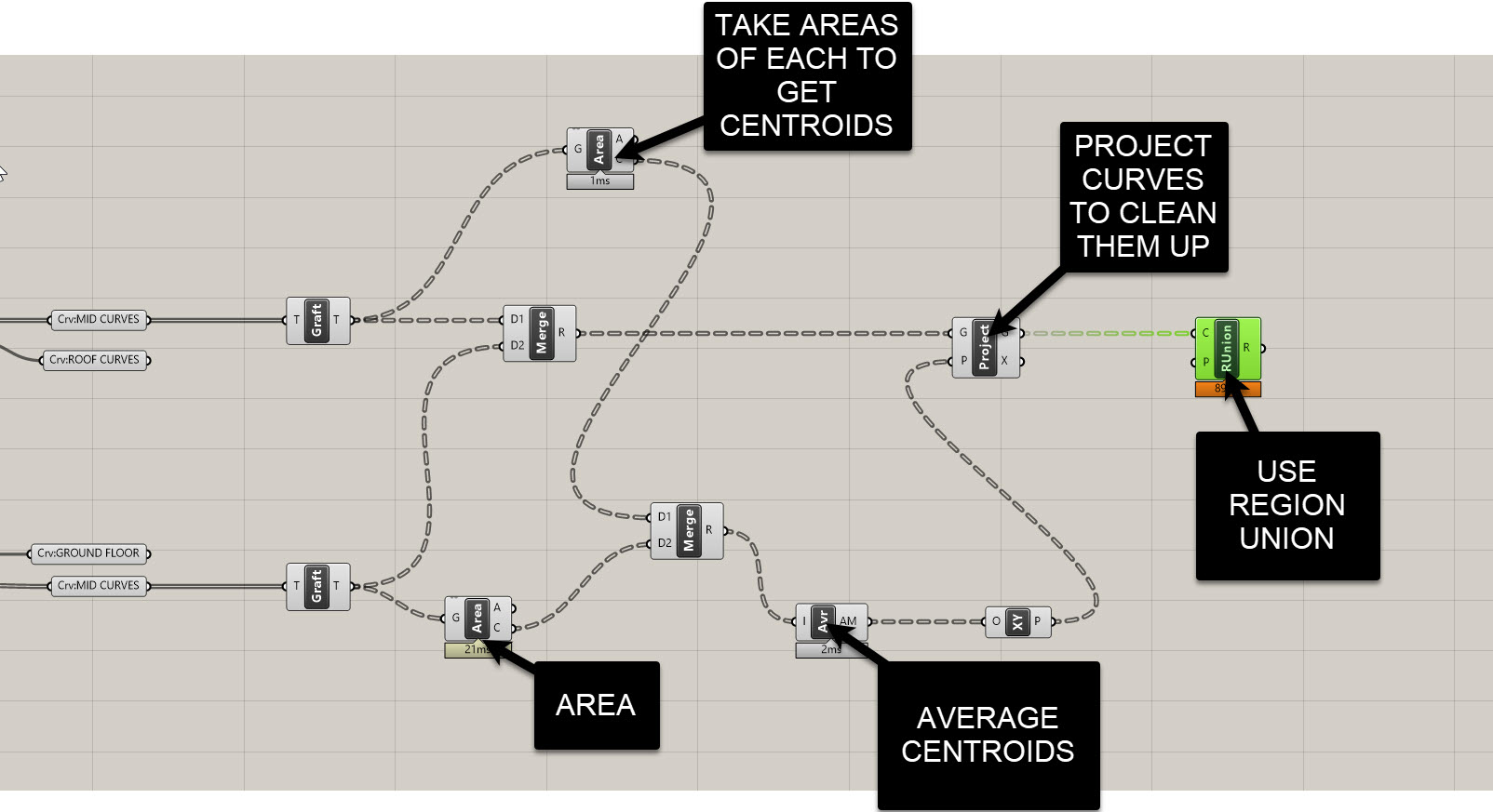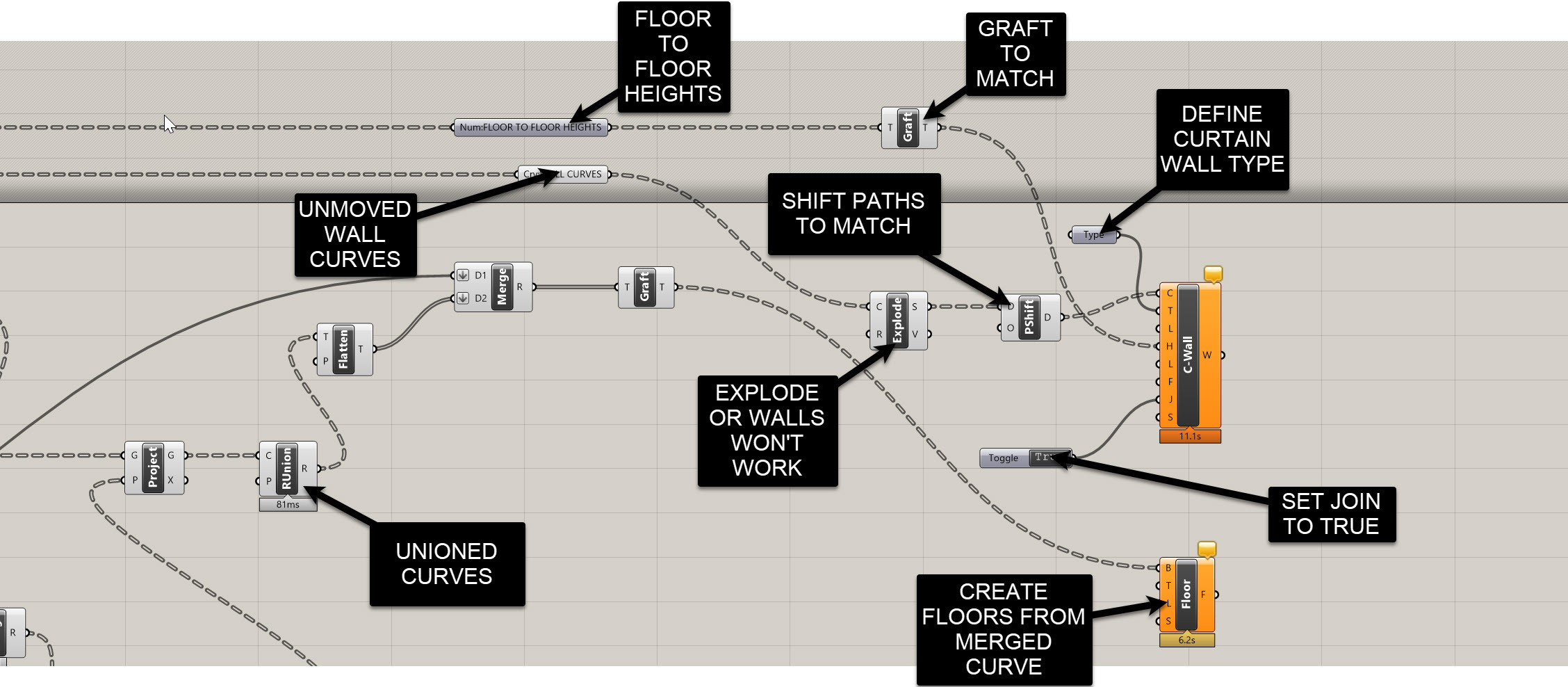 Graftmid curves.Mergelower + upper curves per floor.- If region union errors occur, project curves onto XY planes created at each curve centroid: