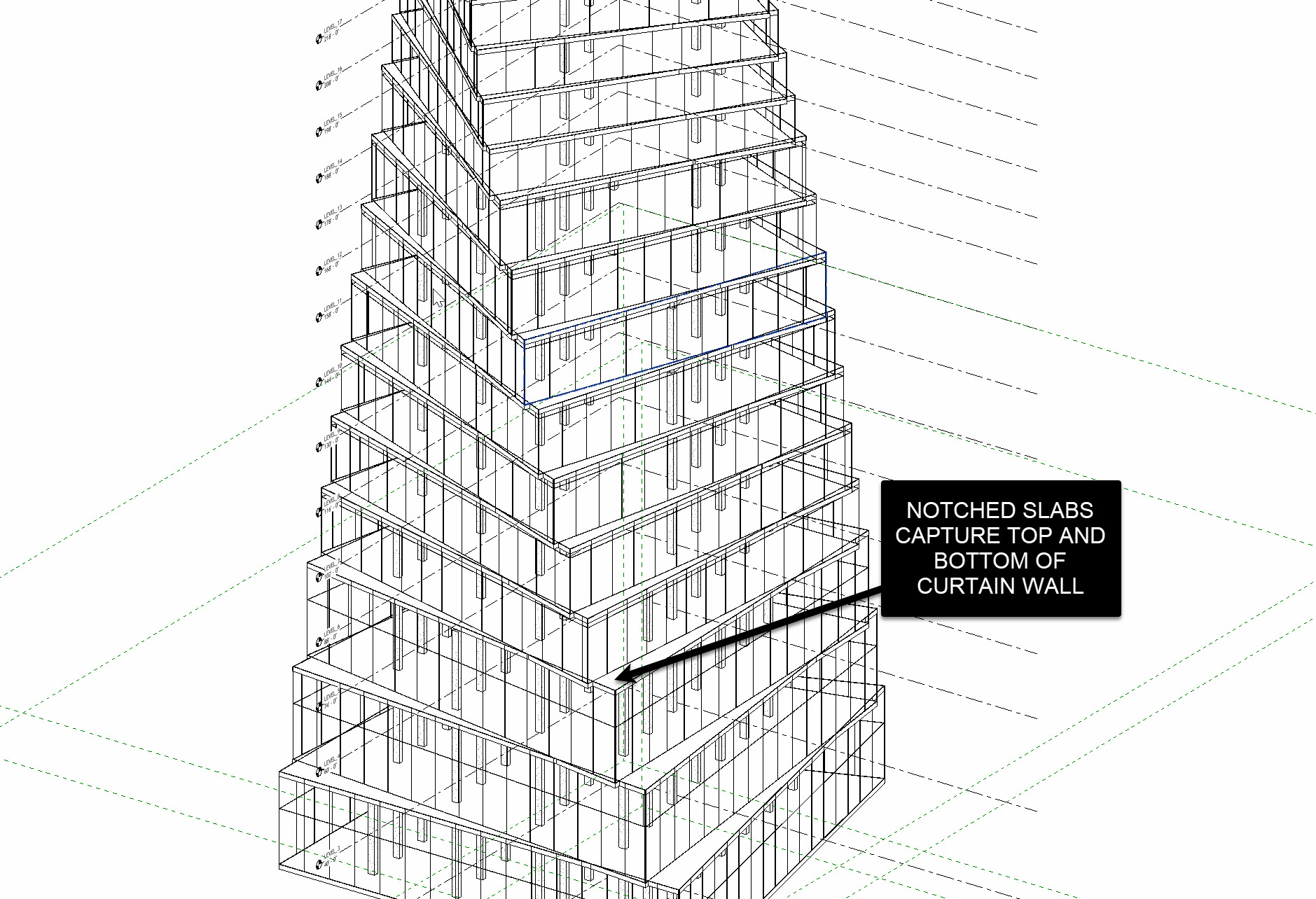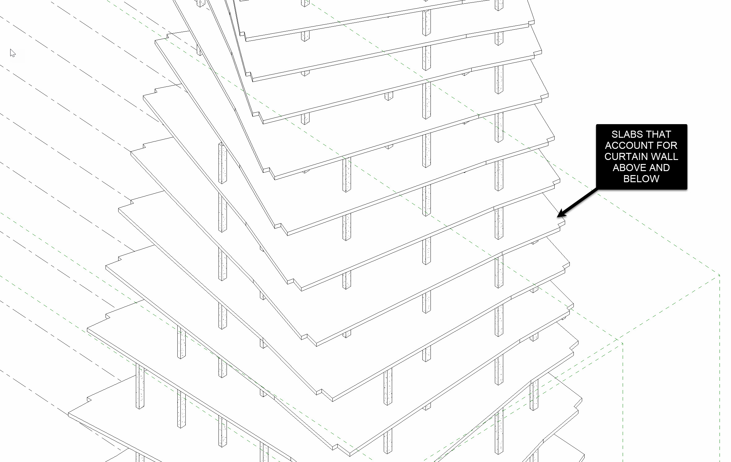 - For a vertical curtain wall, the slabs need to “close the gaps” at top and bottom so that the vertical glass still works as you move up the building.