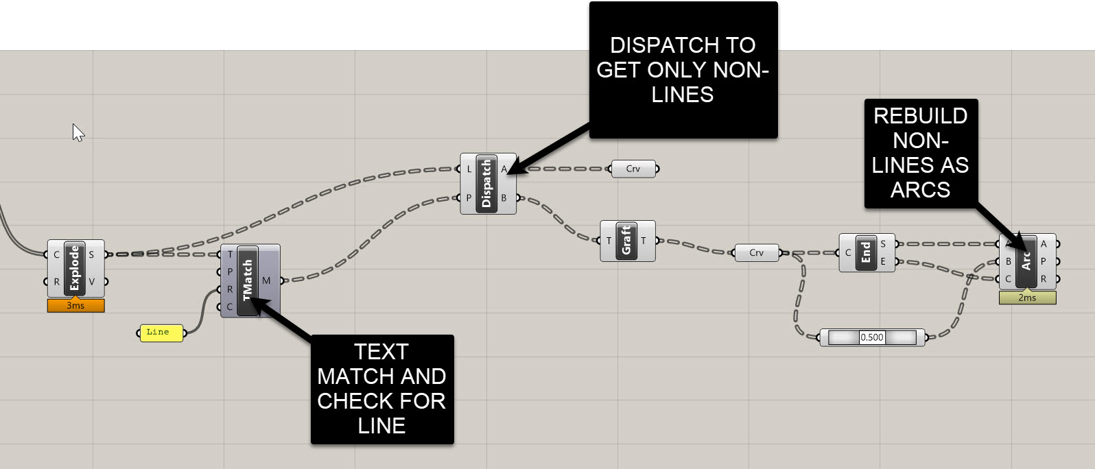 Grasshopper labels the segment types as text, so we can use that to sort them: