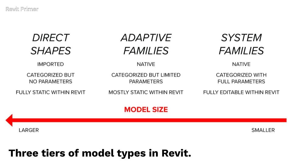 Revit, on the other hand, only cares about systems, categories, and rules.